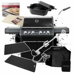 SANTOS S-318 Mit Seiten- & Heckbrenner, Schwarz Inkl. Drehspieß, Rostheber & Silikonablage