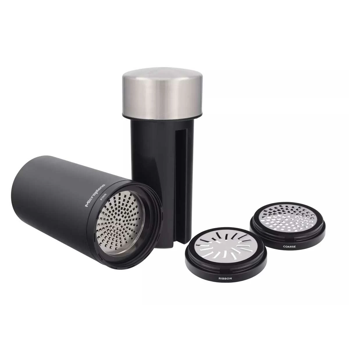 Mit den drei auswechselbaren mahlt, reibt und raspelt die Microplane Universal Mühle Eure Zutaten und Gewürze je nach Bedarf. Grobes Salz, Pfefferkörner und Muskatnuss können zum Nachwürzen bei Tisch fein gemahlen werden, während grobe Parmesanstreifen Eure Pasta als Topping veredeln. Sie ist durch drei Reibescheiben in fein, mittel und grob be
