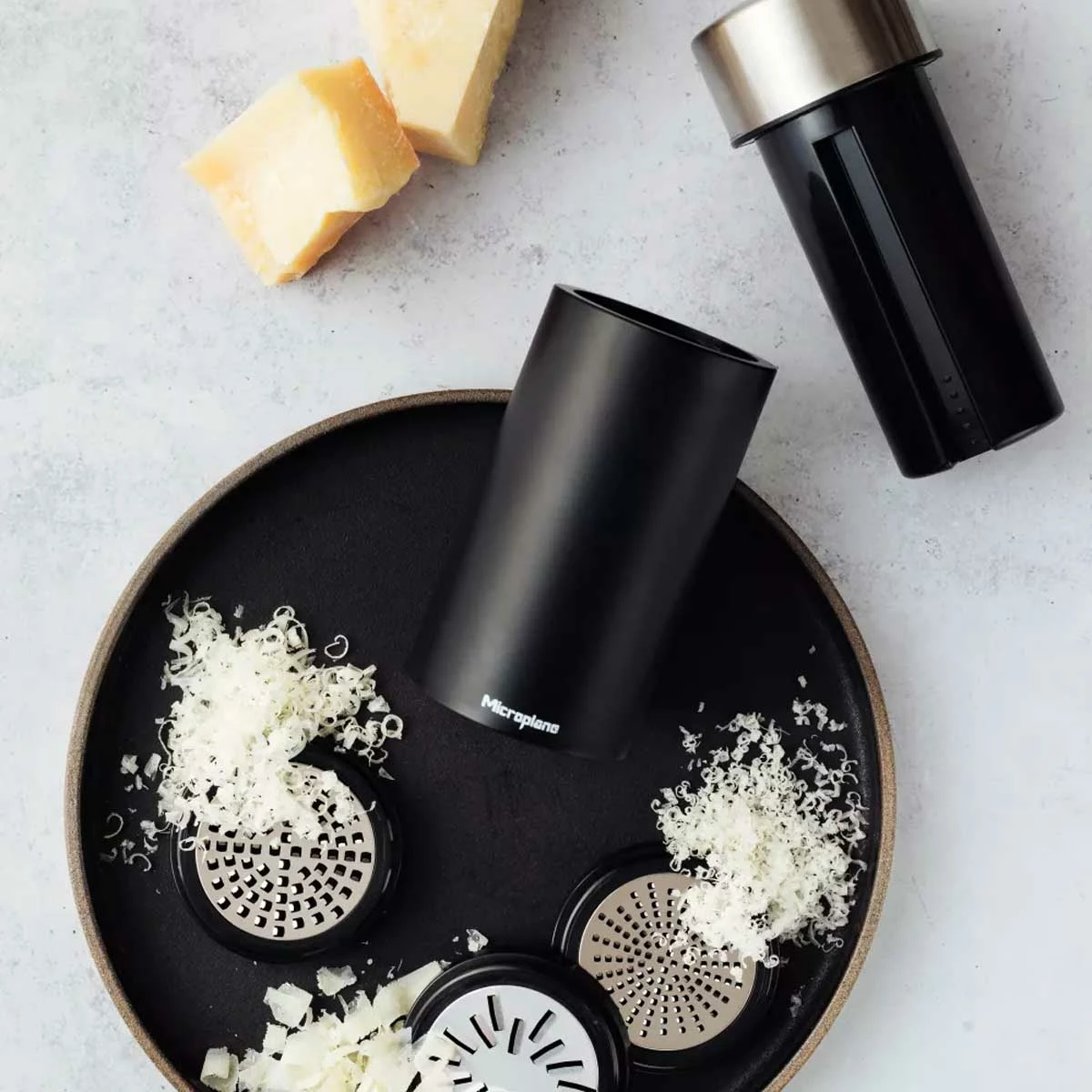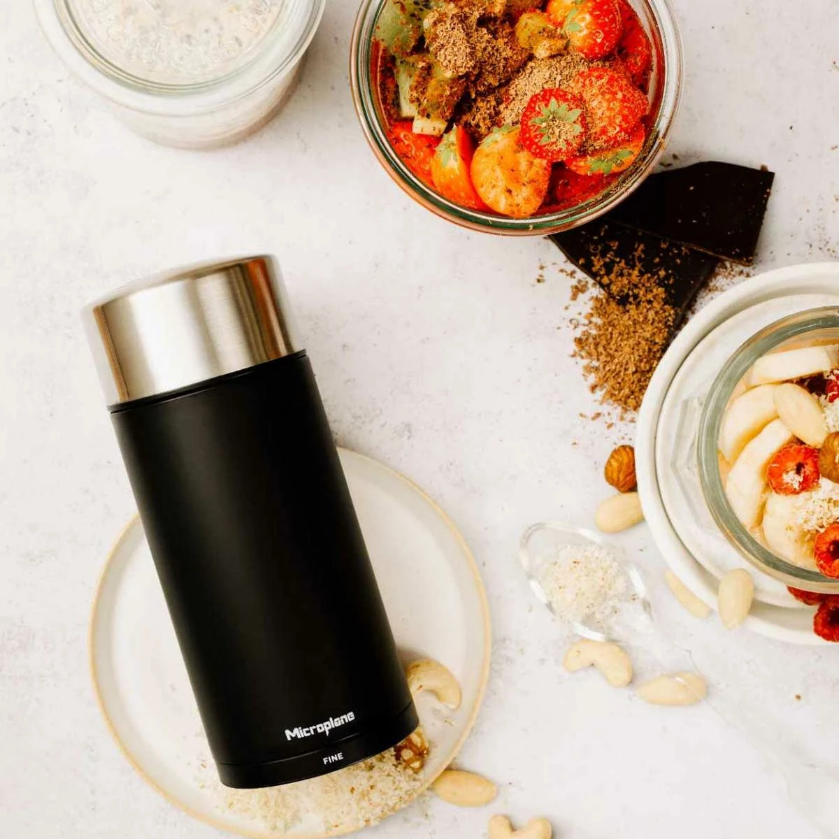 Mit den drei auswechselbaren mahlt, reibt und raspelt die Microplane Universal Mühle Eure Zutaten und Gewürze je nach Bedarf. Grobes Salz, Pfefferkörner und Muskatnuss können zum Nachwürzen bei Tisch fein gemahlen werden, während grobe Parmesanstreifen Eure Pasta als Topping veredeln. Sie ist durch drei Reibescheiben in fein, mittel und grob besonders vielseitig einsetzbar – und eignet sich auch hervorragend für Schokolade, Knoblauch, Nüsse, Samen, Kerne, Kokosnuss und Gewürze wie Zimtstangen, Sternanis und Tonkabohnen.