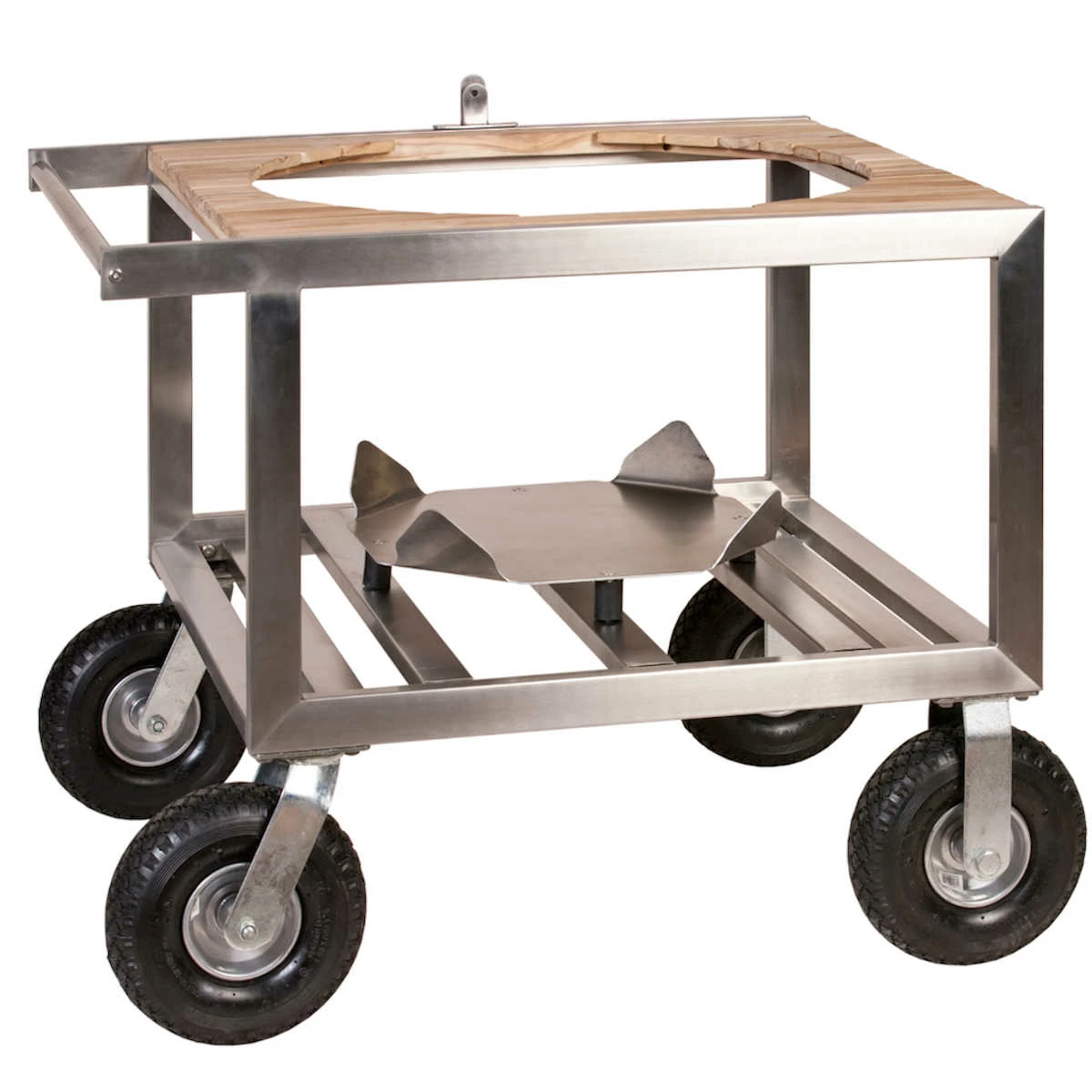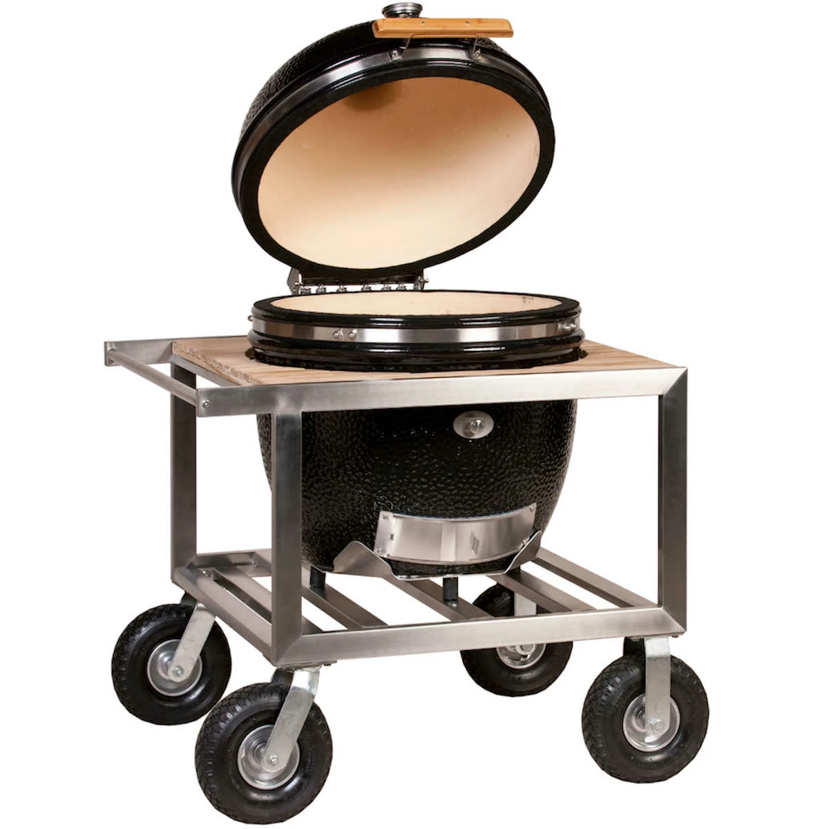 Der Buggy für den LeChef wurde aus verzinktem Stahl mit wetterbeständigen Holzauflagen gefertigt. Verschönert Eure Grillecke und macht Euren Keramikgrill mobiler mit dem Monolith Buggy für den Monolith LeChef. Mit 26 cm großen Reifen und ausgeklügeltem Dämpfungssystem könnt Ihr den Buggy bequem über unebenes Gelände fahren und so auch in Eurem Garten kinderleicht verschieben und neu positionieren ohne dass die Keramik beschädigt wird. Auch im Fahrzeug kann der Monolith ohne weitere Sicherung im Buggy transportiert werden.