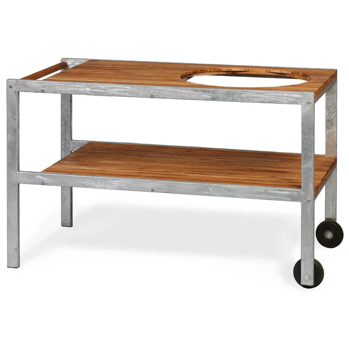 Mit einer deutlichen Vergrößerung der Arbeitsfläche ist der Tisch auch funktional ein echtes Highlight. Dank des Stahlrahmens bleibt der Grilltisch stabil, robust und erfreut sich einer hohen Lebensdauer. Braucht Ihr den Monolith Grill direkt am Tisch? Kein Problem, zwei Räder sorgen für eine Maximum an Beweglichkeit.