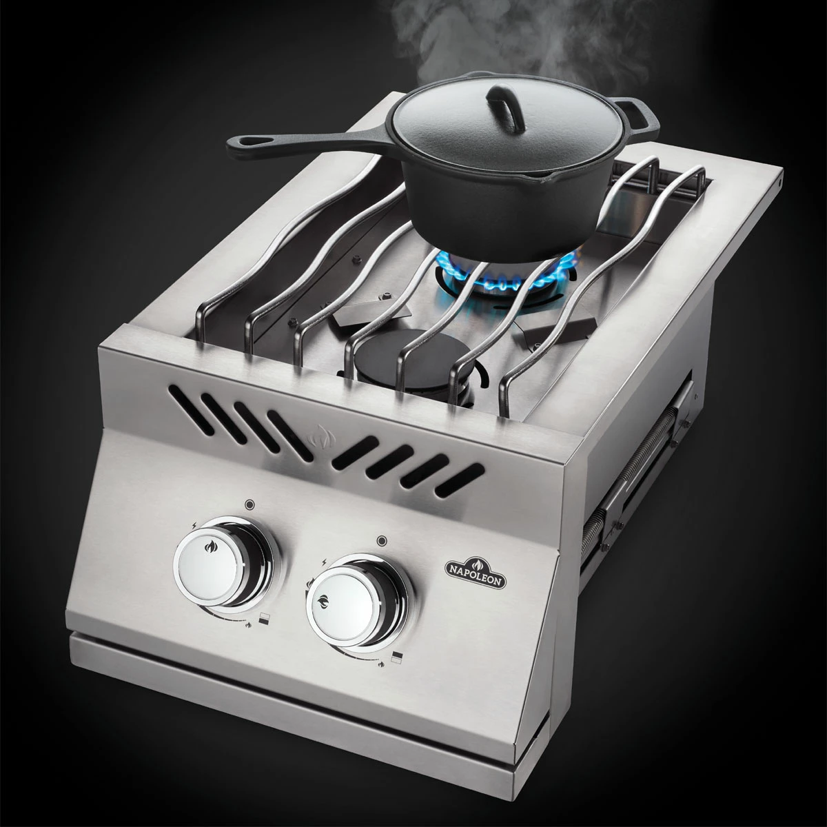 Wer eine Außenküche plant, möchte vor allem eins: Draußen Grillen und Kochen. Mit dem großen Einbau-Seitenkocher von Napoleon könnt Ihr problemlos , während auf dem Grill die Hauptspeisen brutzeln.