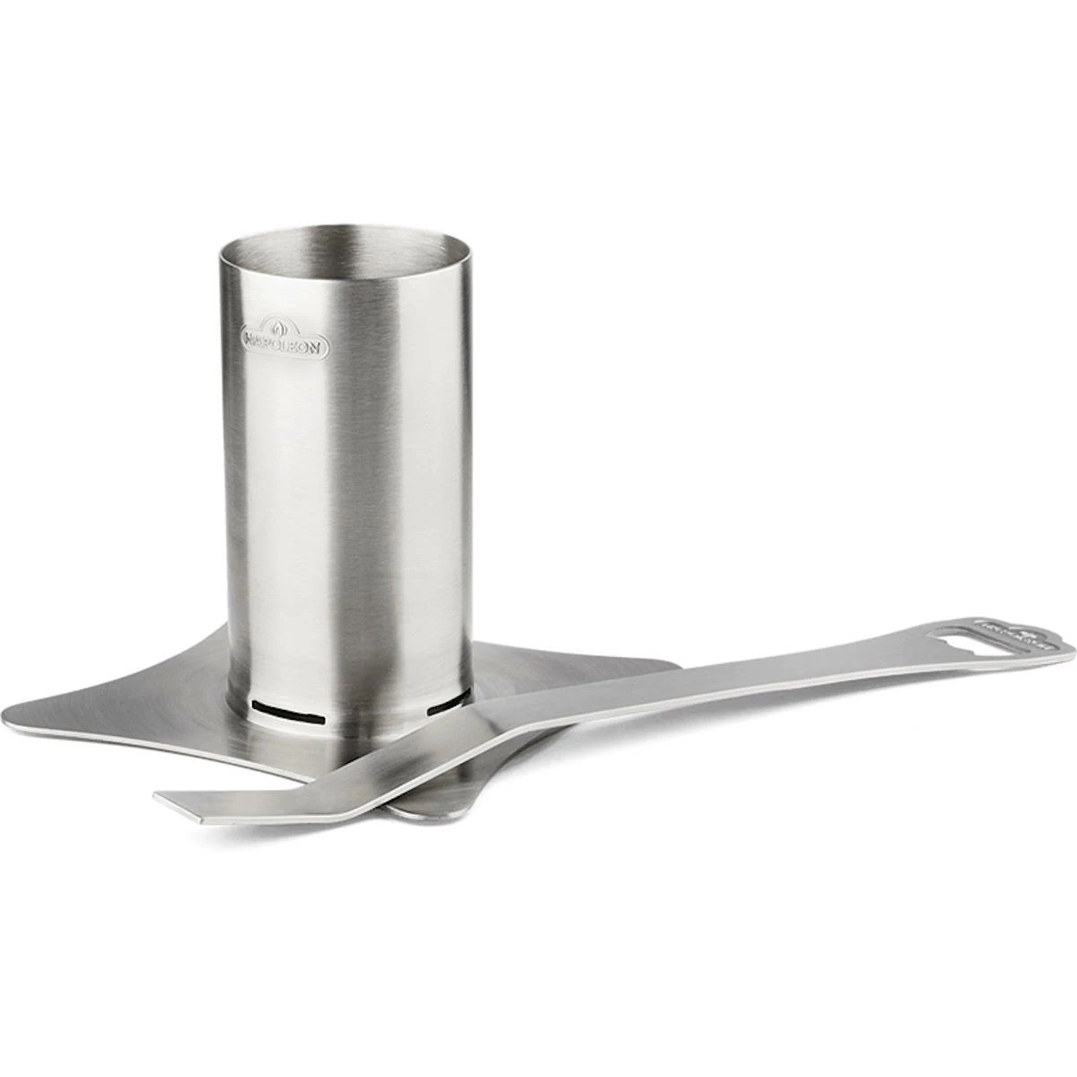 Der Edelstahl-Hähnchenhalter ist ein kompaktes Grillwerkzeug, das für ein hervorragendes Aroma sorgt. Der Behälter fasst 250 ml (1 Tasse) Eurer liebsten Flüssigkeit für bspw. ein üppiges Bierdosenhähnchen. Mit dieser Halterung für Hähnchen könnt Ihr Euer Kreativität freien Lauf lassen: Probiert einfach mal verschiedene Säfte, Weine oder sonstige Flüssigkeiten aus. Der robuste, abnehmbare Griff garantiert, dass Euer fertiges Hähnchen sicher und problemlos von A nach B kommt, um auf der Grillfläche Platz für mehr zu schaffen. Der Hähnchen-Halter ist außerdem spülmaschinenfest.