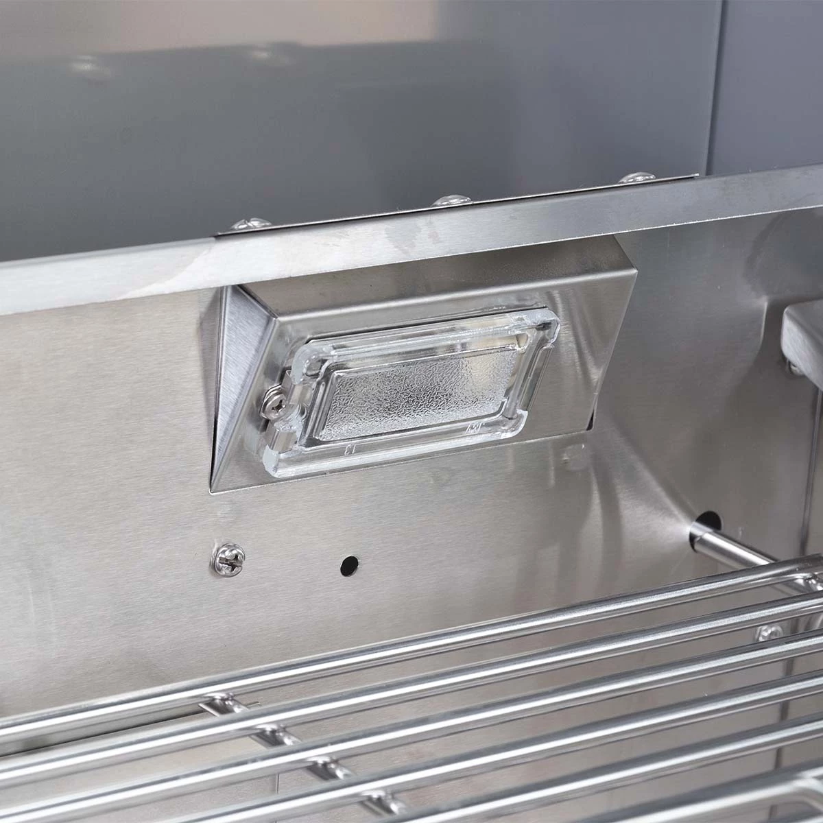 Die zwei in die Rückwand integrierten Lampen sorgen selbst bei Dunkelheit für eine perfekte Ausleuchtung des Garraums. In Kombination mit dem Sichtfenster könnt Ihr Eurem Grillgut so beim Brutzeln zuschauen. Der P-610 ist der erste Gasgrill von SANTOS mit Innenbeleuchtung.