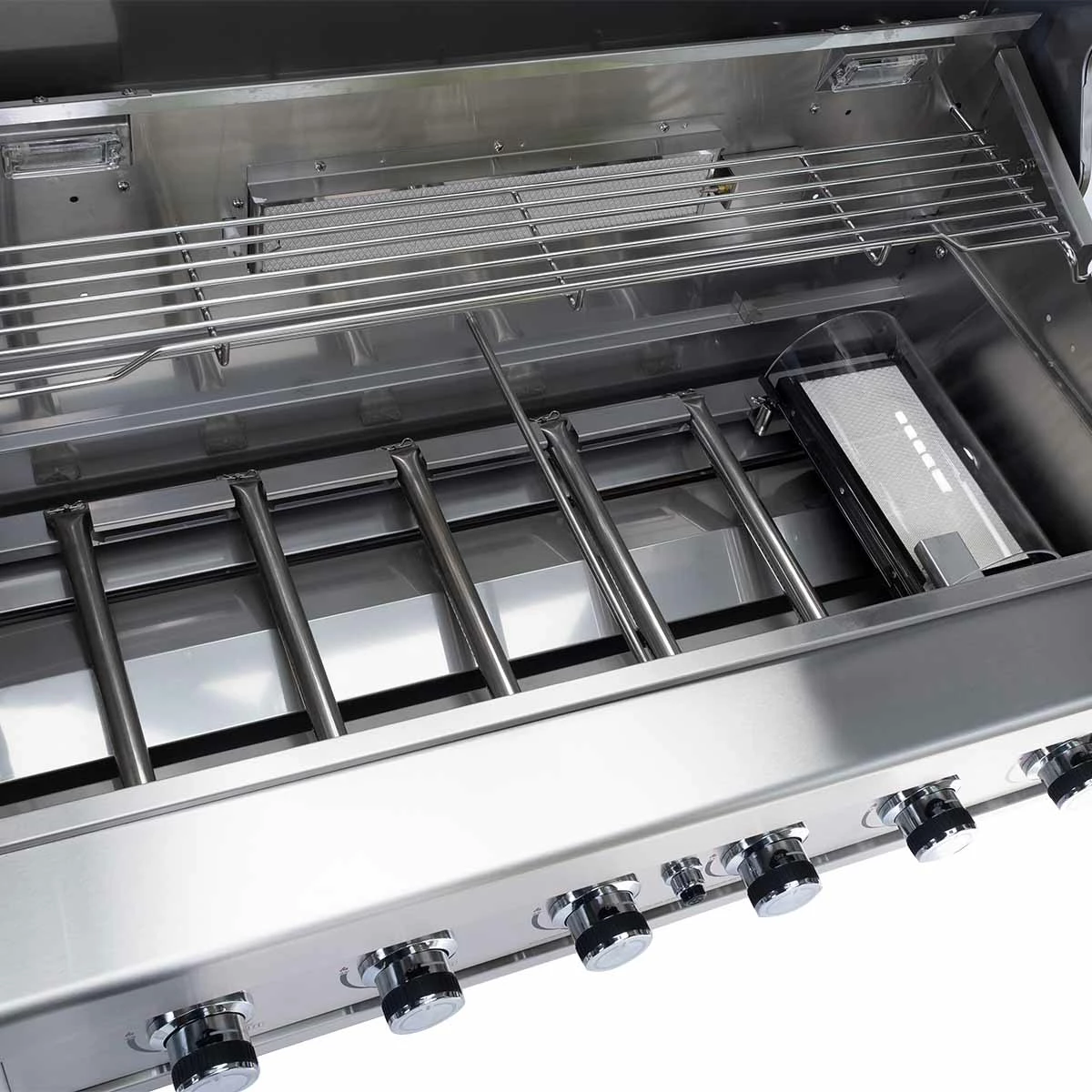 Langjährige Erfahrung, kompetente Beratung und höchstes technisches Know-How sind in das Design des Flaggschiffes von SANTOS Grills geflossen. Der SANTOS P-610 Einbaugrill überzeugt nicht nur durch sein funktionelles, stylisches Design, sondern macht auch technisch ordentlich was her: Die 6 Hauptbrenner mit Edelstahl Flammverteilern sorgen für konstante Hitze und dank der , bestehend aus 2 Grillrosten und einer Grillplatte, können eine Vielzahl an Gästen gleichzeitig verköstigt werden. Mit dem und der integrierten Innenbeleuchtung habt Ihr außerdem Euer Grillgut auch bei längeren Garzeiten stets im Blick. Dieser Gasgrill lässt wirklich keine Wünsche mehr offen!