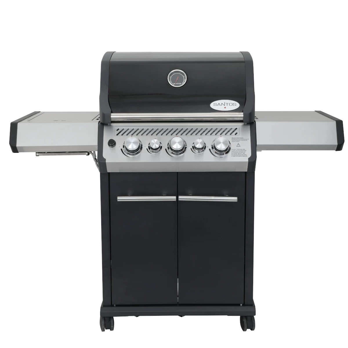 Der SANTOS S-318 Gasgrill in schwarz ist ein richtiges , auf das jeder Grillfan gewartet hat. Mit dem S-318 seid Ihr bestens für die Grillabende der nächsten Jahre ausgestattet. Neben der Hauptgrillfläche, hat der Gasgrill einen und . Die zusätzlichen Brenner sorgen für Power und Möglichkeiten, mit denen das Grillen einfach Spaß macht. Mit einer frischen Gasflasche gewappnet, stellt sich Euer Grillgerät jeder hungrigen Meute entgegen.
