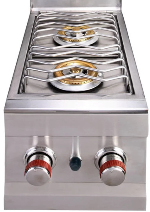 Der Sunstone Slide-in Doppelseitenbrenner wurde aus massivem 304 Edelstahl gefertigt und ist mit Edelstahlrosten ausgestattet.  Der Deckel kann abgenommen werden, sodass auf größere Töpfe und Pfannen verwendet werden können.