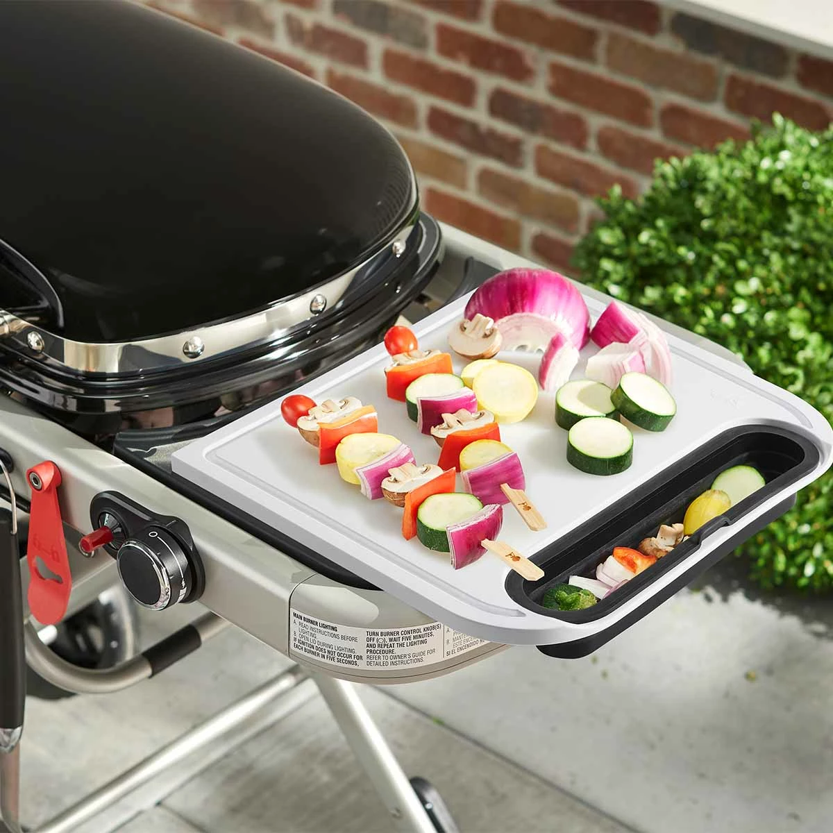 Das praktische Schneidebrett von Weber passt auf alle Weber Grill Seitentische. Mit dem Seitentischaufsatz wird Eure Arbeitsfläche für Vorbereitungen neben dem Grill erweitert. Das Schneidebrett besitzt einen praktischen Auffangbehälter, der sich leicht entnehmen und säubern lässt, sowie zusammenklappbar ist.